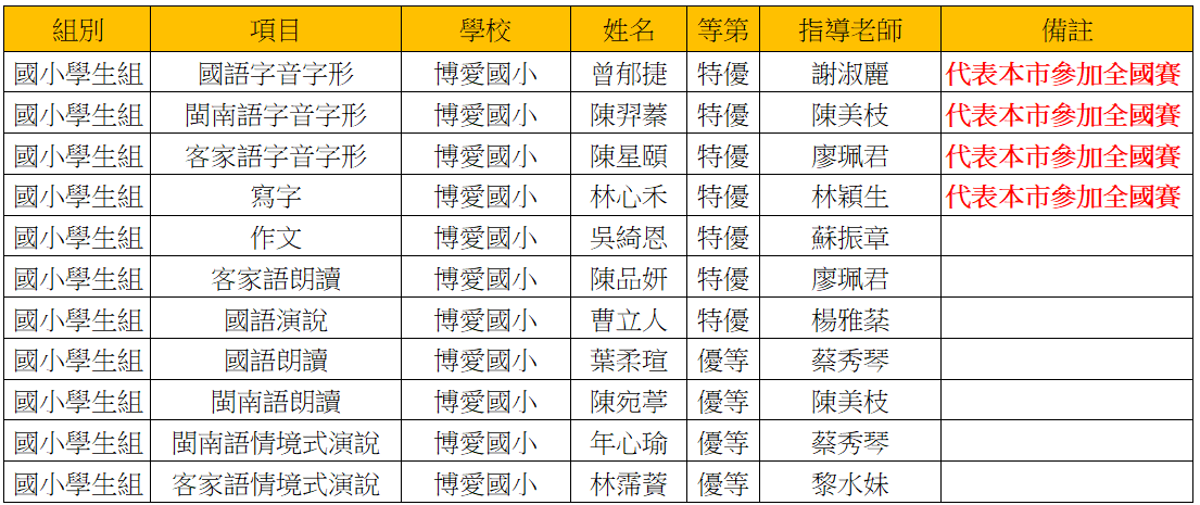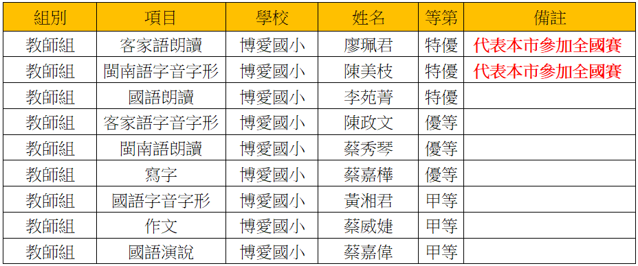 感謝所有參與比賽老師平日之辛苦指導與努力付出,全體師生為您高興~