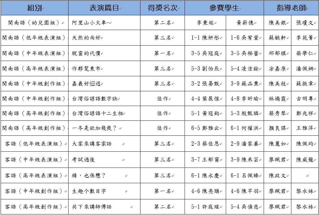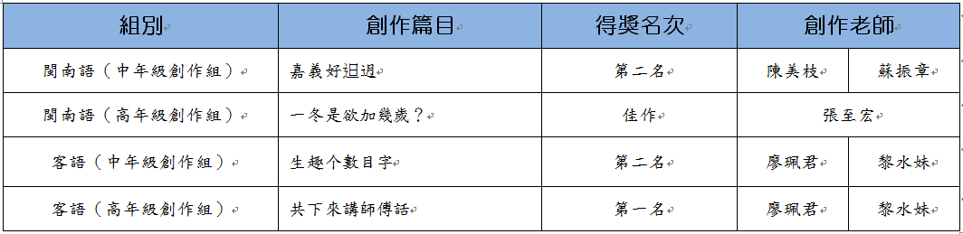 賀﹗本校參加嘉義市106年度本土語言答喙鼓比賽,榮獲團體第一名!