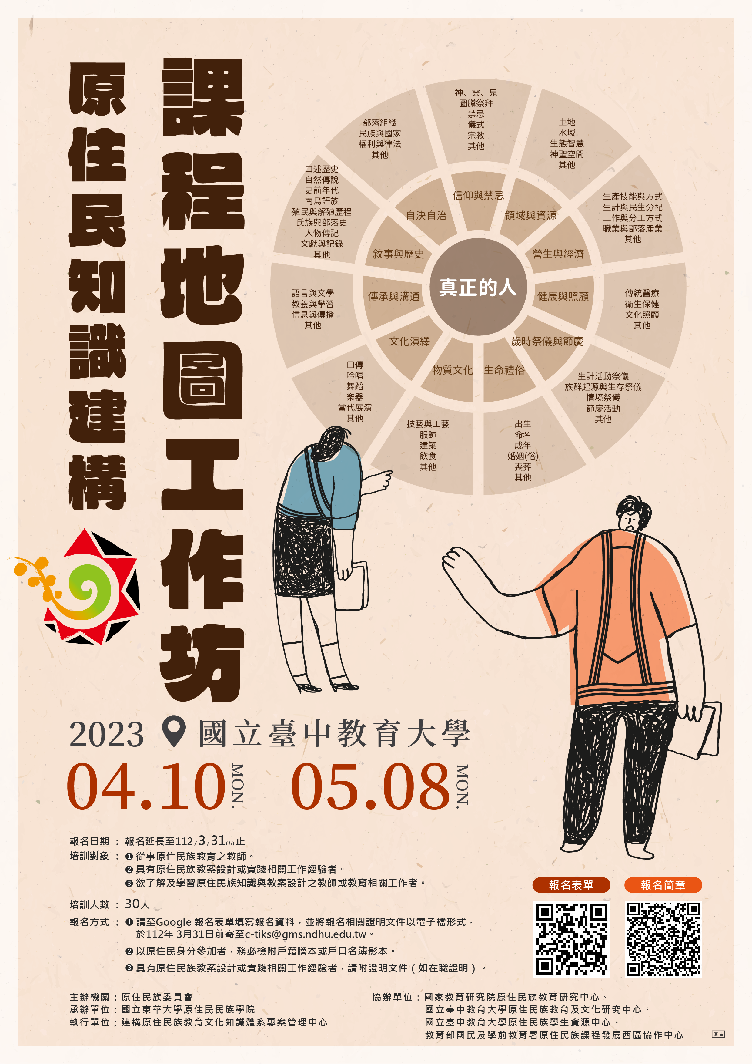 一、活動辦理將針對國小、國中及高中不同學習階段進行原住民族教育文化課程地圖之應用與討論,以利推動原住民族知識課程發展以及增能教師原住民族知識課程教學能量。