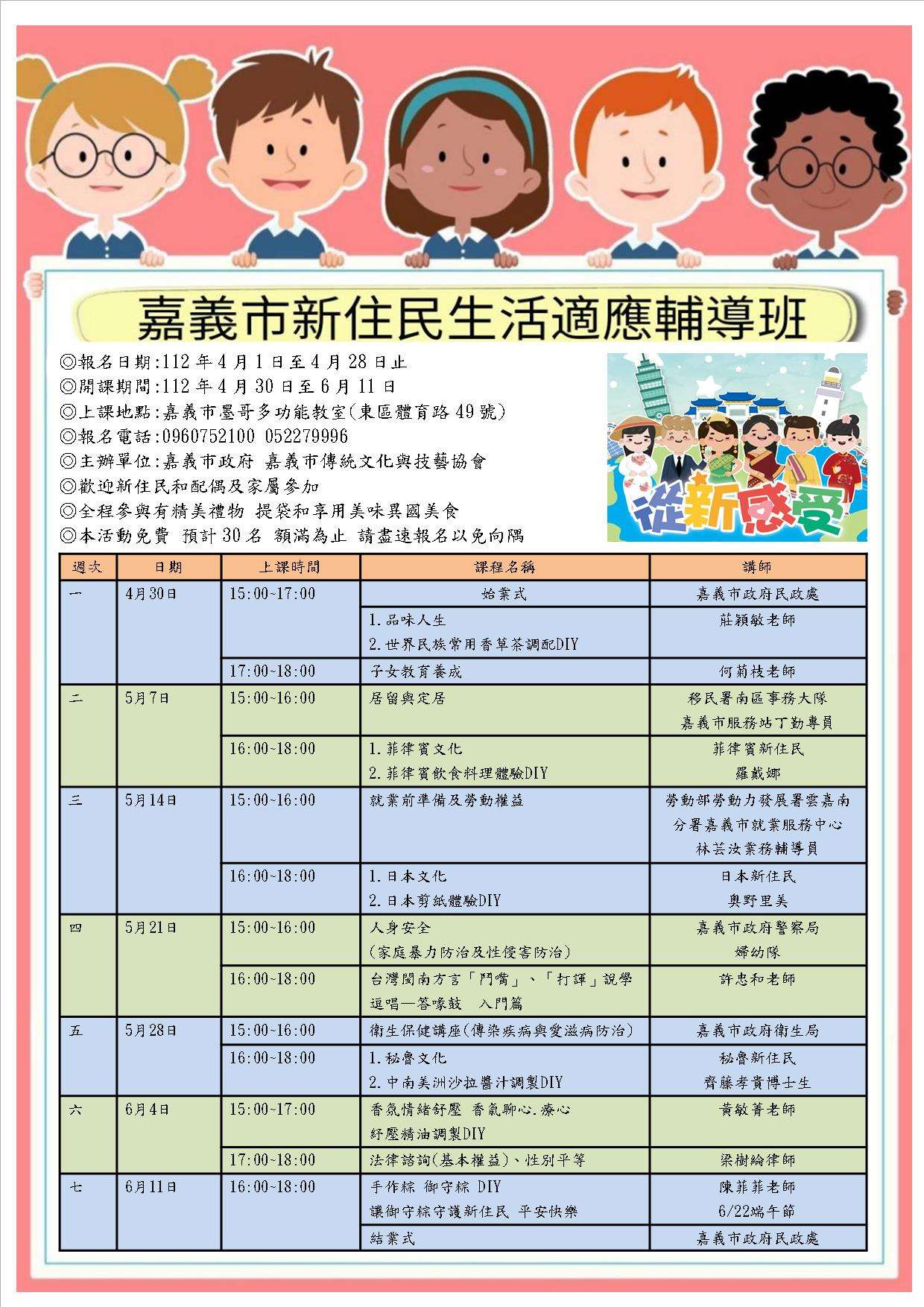五、112年4月1日起開始受理報名,額滿截止(以報名順序為準),相關報名事宜,請電話洽詢嘉義市傳統文化與技藝協會05-2279996。