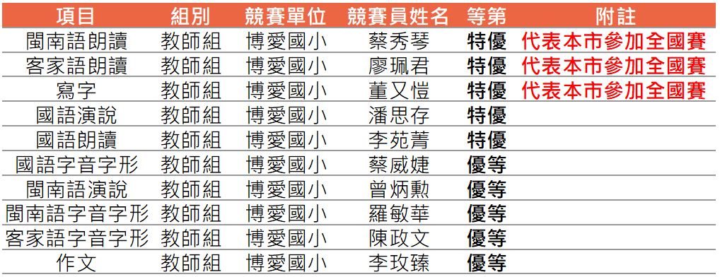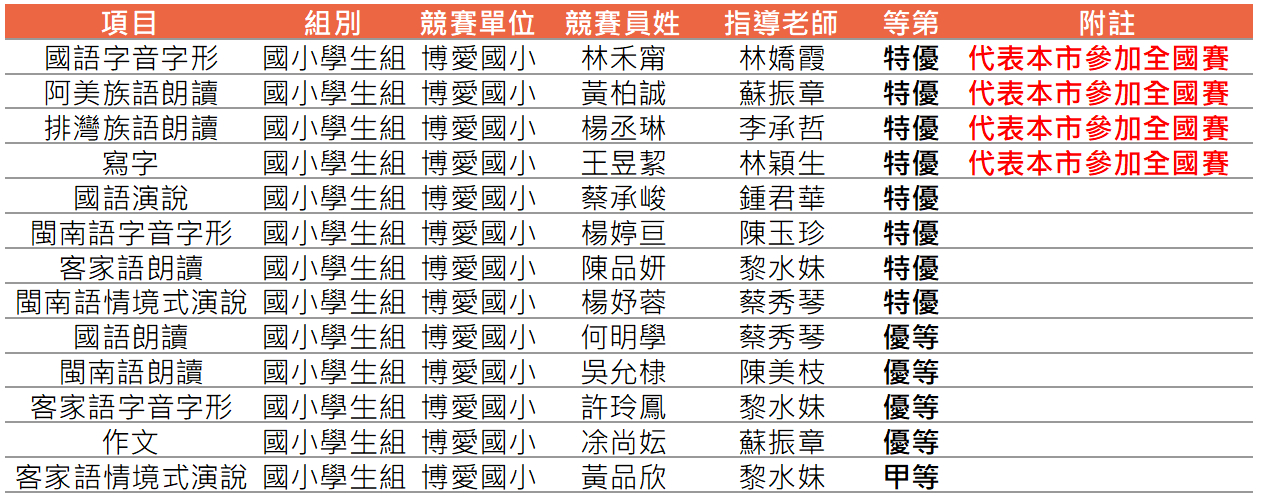 狂賀!本校參加嘉義市112年度嘉義市語文競賽榮獲國小學生組團體與教師組團體雙料冠軍!!