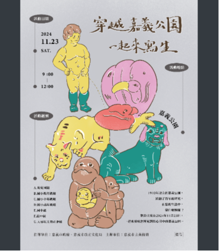 說明: 一、為深化本市美學扎根,延續「畫都」精神,將於11月23日 上午9時至中午12時,於嘉義公園辦理「穿越嘉義公園.一 起來寫生」活動。